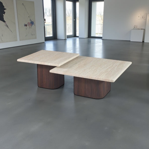 Breng rust en verfijning in je woonkamer met deze set van 2 Japandi salontafels. De bladen zijn vervaardigd uit écht steen en stralen pure luxe en duurzaamheid uit. De rechthoekige vormen zorgen voor een zachte, natuurlijke uitstraling en maken deze set perfect als flexibel middelpunt in je zithoek. Schuif de tafels speels onder elkaar, gebruik ze samen of afzonderlijk – ideaal voor gezellige koffiemomenten of ontspannen momenten voor jezelf.