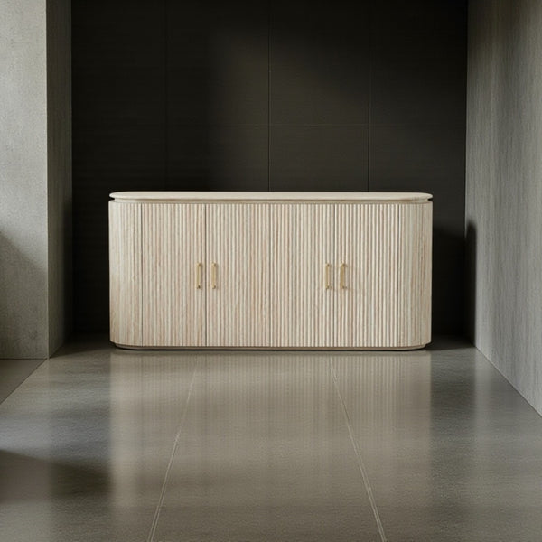 Japandi dressoir – Travertin blad met 4 deuren - Beige