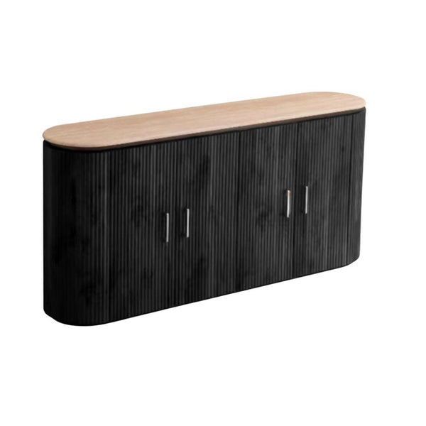 Deze hoge variant van het Japandi dressoir brengt natuurlijke elegantie en verfijnde rust samen in één krachtig ontwerp. Het meubel is afgewerkt met een prachtig travertin blad, waarvan de zachte Zwarte tinten en unieke aders elk stuk een exclusief karakter geven. De natuurlijke steen zorgt voor een gevoel van luxe en balans — typerend voor de serene Japandi-stijl.
